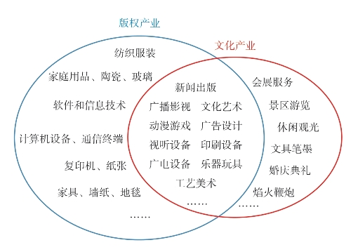 由于侧重点不同,版权产业与文化产业包含的产业类别有所不同。版权产业聚焦于版权制度,指那些版权可发挥显著作用的活动或产业,强调创新,与是否具有文化属性无关;文化产业聚焦于具有文化内涵和文化传承的行业,以满足人们精神需求的文化产品为核心,因而将那些虽然具有创造性但无文化内涵的行业排除在外。以软件产业为例,软件是受到著作权法保护的作品,具有独创性因而属于版权产业的范畴。但大多数软件由于缺乏文化内涵未被包含进文化产业,只有多媒体、游戏动漫和数字出版软件因具有文化属性而被纳入文化产业。