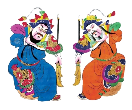 绵竹木版年画为我国四大年画之一,起源于北宋时期,在明清时尤为繁盛,讲究绘画的对称,色彩艳丽,尤善用金色。年画题材除传统门神以外,还涉及戏曲故事、山水花鸟、写景纪实、吉祥图案等。