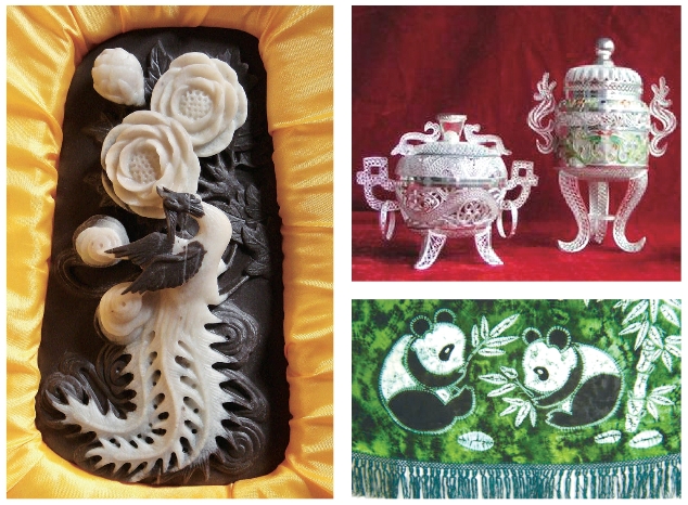 四川省由于山区石材资源和竹资源丰富,在竹编、石雕、砚雕等技艺方面领先。其中,竹编包括渠县刘氏竹编、青神竹编、瓷胎竹编等多个类型,用料考究、做工精细、技艺独特、品种繁多,大多需由手工编制完成。白花石刻巧妙利用白花石赤绿白相间的自然纹理,采用镂空的纯手工雕刻手法,将其制成千姿百态、栩栩如生的文房用品和装饰物件。苴却砚是中国名砚之一,其雕刻集浅浮、镂空、圆雕、深雕、薄意、减地雕刻于一体,形成了厚重浑实、明丽浓郁的多元风格,色彩绚丽丰富,花纹独特,尤以“石眼”著称于砚界。