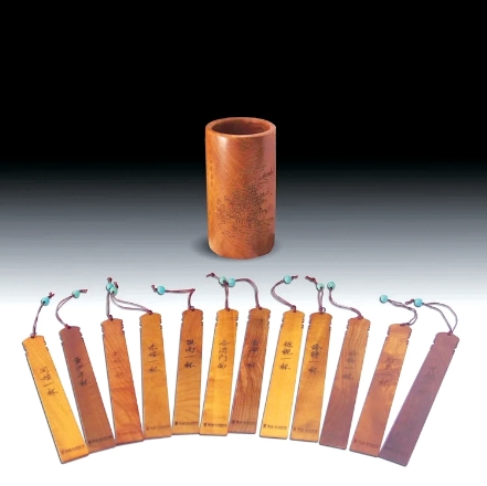 图为宜宾市博物院利用馆藏文物资源开发的文创产品书香酒令书签。