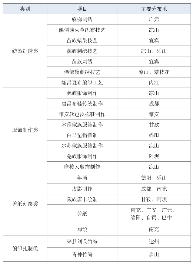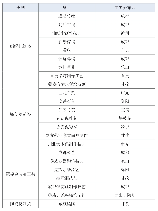 附录二 四川省主要传统手工艺的分布情况