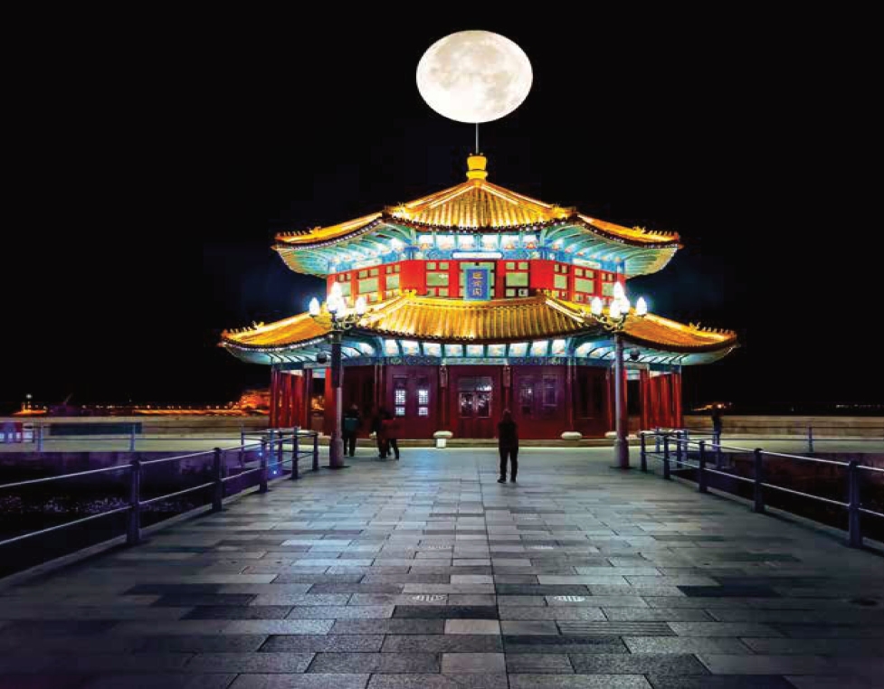 Zhanqiao Pier stands at the southern end of the busy Zhongshan Road in Qingdao. The pier reaches into crescentshaped Qingdao Bay from the coast. The classical Chinese style two-story octagonal pavilion standing on the head of the pier is named Huilan Pavilion (Pavilion of Returning Waves). The coast on the north of the pier is Zhanqiao Park. Visitors can sit on the stone benches and take a rest in this heavily wooded park.