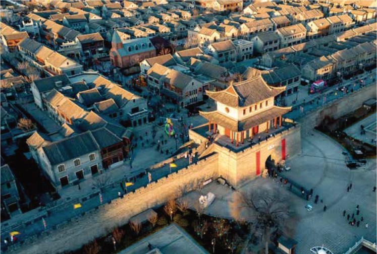 The hustle-bustle of the busy streets epitomizes the prosperity of the city. In Jimo Ancient City, one can listen to the melodious folk songs, wander along the walls and Confucian Temple, and experience the charm of intangible cultural heritage like Guanzhuang bamboo weaving, Jimo wooden mold, Da'ou bird cage, etc. With a fusion of tradition and fashion, the fine cultural heritage is carried forward in the daily life business.