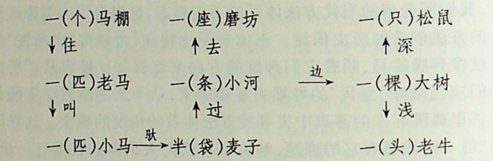 2.对照读文,说说9个主要事物在课文中是怎样联系起来的,用箭头加简要说明表示。并让同桌学生互说,两位学生试说,当堂集体评议,最后完成如下: