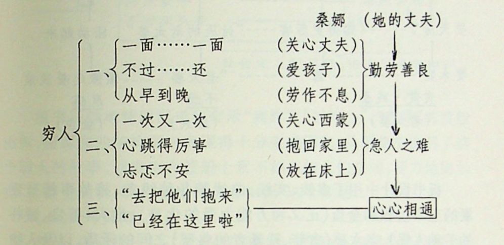 即在板书设计中,除了提炼关键词语作为板书内容的主体外,有时也可以加上一些教师编拟的提示语。这些提示语必须是十分必要,确能起画龙点睛作用的。如《穷人》的板书设计: