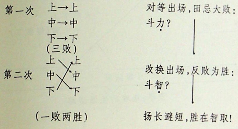符号,以它那一目了然的通用性和代替语言表述的经济性,在板书设计中,有着重要作用。板书设计中常用的符号有箭头、几何图形和各种标点。如《田忌赛马》的板书设计: