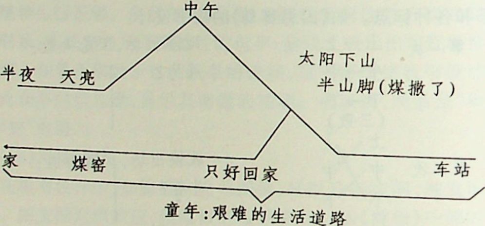 整幅板书的排列,采用了挑煤的线路图像造型,按第一次挑煤的经过,从时间、空间、人物、事件四方面作综合的主体的显示。由于排列方式形象、巧妙,板书设计为学生展示了课文所反映的生活画面,足以充分调动孩子的想象力,去感受童年的吴运铎在饥饿威胁下被迫走上艰难谋生道路的辛酸生活。这正是借助“排列”的功能,给我们提供了“潜台词”。如果将课文内容只作文字表述式的一般陈述,就不可能产生这种暗示效应。