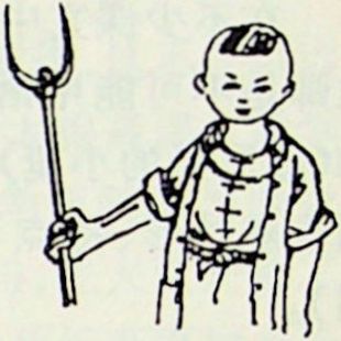 在有些课文里,板画也可以用来描摹人物形象。如教学《少年闰土》一文,根据课文第一小节的内容,画出少年闰土项带银圈、手捏钢叉的外貌,对于激发情感,熏陶情感,学好课文也是很有帮助的(见右图)。