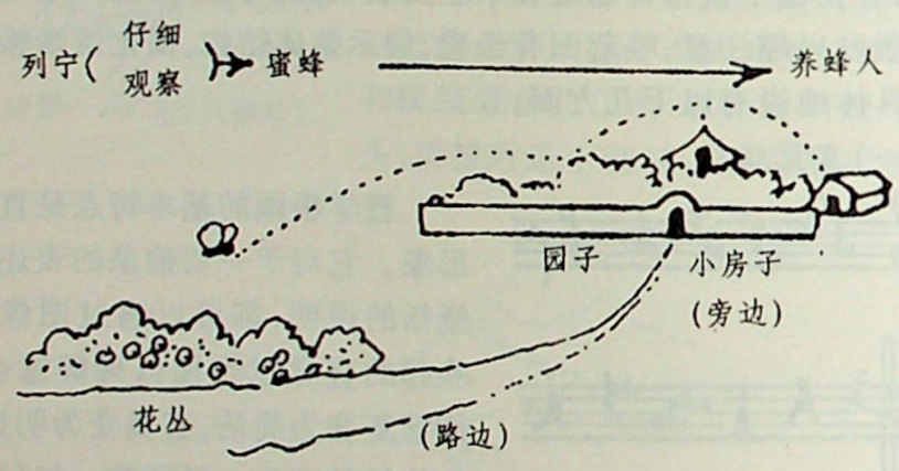 图像把课文的主要信息,整合在一幅画面之中,以具体的场景,不仅显示了蜜蜂采蜜的方位,养蜂人放蜂的合理性,而且点明了列宁从蜜蜂回巢的路线找到了养蜂人的科学道理,说明了列宁善于观察分析的思维品质。
