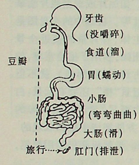 解剖图有别于剖面图,它可以充分显示事物的结构、细节。综合运用纵剖、横剖、平面、立面等各种手段,作整体的或局部的解剖。如《我的旅行》(六年制第五册)的板画设计(见左下图)。