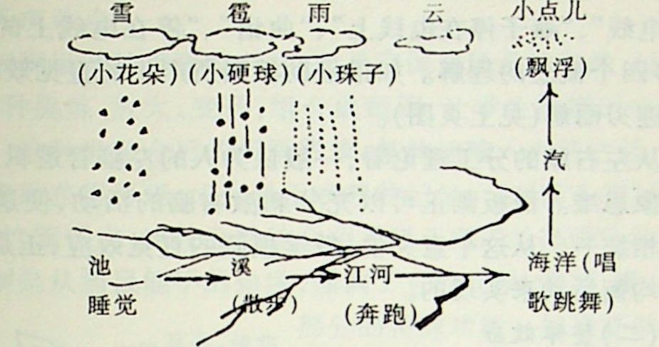 有些课文的内容比较复杂,为了有助于讲读,教师可以综合运用上述各种画法,做到不拘一格。如教《我是什么》时,就综合运用了多种手法示意。