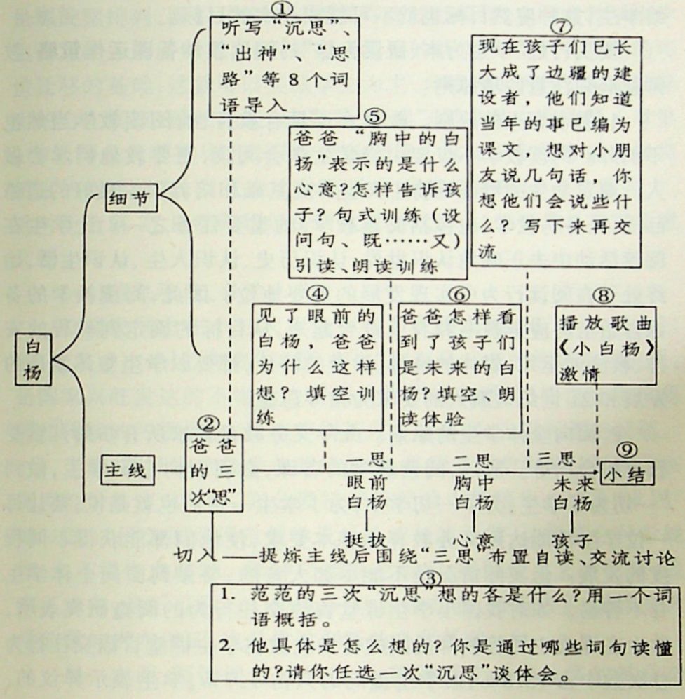 下面,试以课文《白杨》的深读阶段(第二教时)为例作图示说明: