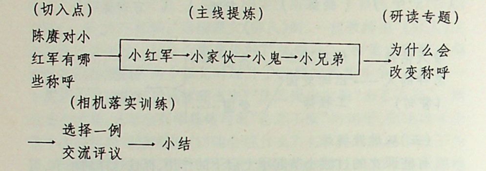 有的课文的段意可归结为很有特色的小标题,便自然地形成了课文主线,作为研读的抓手是很能激发学生的阅读情趣的。如《马背上的小红军》一文中,陈赓将军对小红军的称呼随课文情节发展而变化,耐人寻味。让学生探讨这些称呼变换背后的含义是研读课文的重要抓手。如: