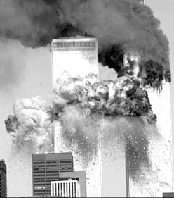 2001年9月11日美国纽约的世贸大楼遭到恐怖袭击。