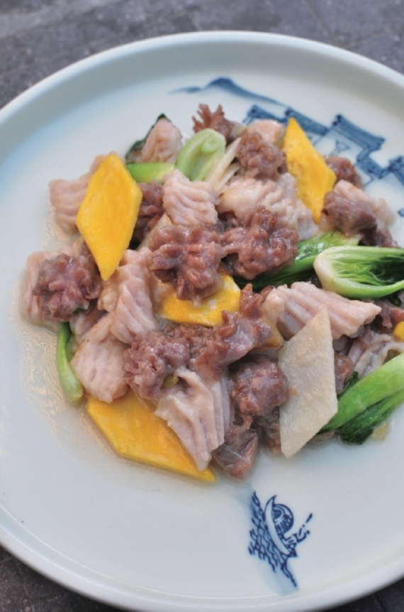 济南菜里有一味历下双脆,说是一味,其实是两道菜,一道油爆双脆,一道汤爆双脆,都用鸡胗和猪肚头来爆,区别在于“爆”的技法的不同,一是汤爆,一为油爆,却都是娇嫩脆爽,妙不可言。若非得用一个词来形容的话,我觉得用唇齿间的“绝代双娇”来说才有那么点意思。
