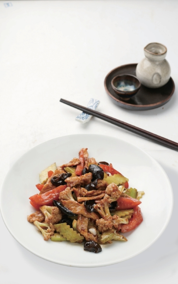 由此可见,以往炒肉片的配菜主要以苔菜、水笋、水木耳为主。现在博山的炒肉片,配菜丰富了许多,番茄、黄瓜、菜花、青椒皆可入菜,有物产丰富之因,也有节约成本之故,就像现在鱼香肉丝或木樨肉做法一样,亦是多了许多搭配。