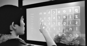我们可以从近年的一些屏幕视觉变革来感受这种创新屏幕设计是如何重构人与城市的体验关系。例如透明屏的发展,早期我们会在一些商业店面的玻璃橱窗上看到透明屏幕的运用,屏幕中放映的主要是商品和品牌相关的影像;而当下这种透明屏开始采用有机发光二极管(OLED)屏幕,整个屏幕前后通透,这样前后两面都可以显示出不同的图像,实现前后“两面看”。2014年韩国科学技术高级研究院就研发出这种“Trans Wall”的双面透明屏幕(见图1)。如果将这种屏幕运用到教学场景中,直接带来的将是教学空间的灵活布置和更多的人屏互动。再如镜面屏的运用,也是一屏两用,既可以当镜子,也可以作屏幕,在没有通电或感应的情况下是正常的镜子,而通电感应后即可以作为屏幕。全球首间安装这种镜子屏幕的商业机构是韩国首尔一家美发屋。客人在剪头发的时候,除了在镜中看到发型变化,还可以享受娱乐资讯内容(见图2)。
