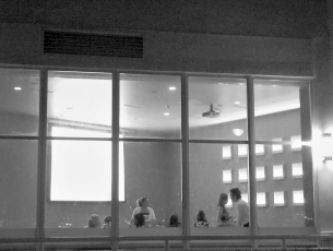 近年,学校、图书馆、展览馆、办公室等教育文化领域中,公共屏幕运用数量日益增多,水平日益增进。很多大学的教学楼、教室和图书馆都布满了各种屏幕,大部分工作的办公电脑都是双屏幕的无缝连接,扩大了屏幕的操作范围。在艺术馆和展览馆,屏幕同样随处可见。艺术馆不同屏幕类型发挥的功能也有差异:小屏幕可以解说传达详细信息;大屏幕可以带来沉浸、吸引和制造空间感的体验;平板屏幕可以聚集人群仔细观览;装置艺术品中的屏幕可以制造动态感[18]。特别是在教育领域,屏幕的运用尤其被重视。在美国密歇根大学安娜堡分校,不仅每个教室都设置有投影屏幕,在专门的影像教室还配置有电影院规模的大屏幕,由此也使得大学里的影像室成为城市影像艺术节的一个放映活动场所(见图8)。而大学里的教学楼和图书馆的每一层都设置有专门的媒体中心(Media Center),供自修的学生进行电脑网络资源浏览。此外,每一间学习室中都装有一块LCD屏幕,供学生小组讨论时使用(见图9)。而在图书馆的大厅两侧,还特别配置多屏拼接的大屏幕墙,这样学生无论坐在哪一侧都可以在临近自己的屏幕上观看讲解内容;在分屏解说时,分屏显示的效果特别有利于学生的注意和记忆(见图10)。教育场景中屏幕的智能化发展更是近年来的一个重大突破。2015年美国哈佛大学商学院开启了虚拟教学模式。这个虚拟教室没有一张课桌椅,取而代之的是教授对着延伸好几面墙的数字屏幕教学,上面有多达60名学生的同步联机画面(见图11)。这样学生足不出户,不仅可以看到老师,还可以看到自己和其他同学的上课情景,而老师也可以一览无余地看到学生的听课情况,并畅通无阻地与学生沟通对话。