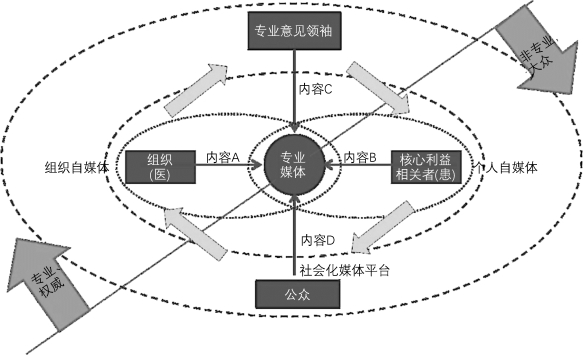 社交媒体时代,传播权的泛化、言论的自由性和信息的易得性打破了专业媒体[3]议程设置的强势地位,信源与渠道纷杂,形成竞争共振的状态。当下网络舆论有两个基本特点,一是网民对特定事件的讨论和表达往往夹杂着来自其他方面的情绪,从而超出事件本身的界限;二是网络表达中的相互强化和情绪共振[4]。在医患纠纷类舆情中,因为所处领域拥有的专业门槛,让整个互动过程更具复杂性,专业性成为分析舆论场中话语角力的一个维度,亦构成了参与讨论者的身份标签(如图1)。