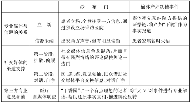 表1 “纱布门”和“榆林产妇跳楼事件”舆论反转的传播机制比较