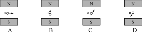 9.(2021·金华金东)图中a表示垂直于纸面的一根导线,它是闭合电路的一部分。当导线a在磁场中按箭头方向运动时,不能产生感应电流的是 ( )