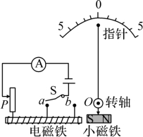 15.(2021·杭州上城)(14分)小金为验证影响电磁铁磁性强弱的因素,设计了如图实验,右侧底端固定有小磁铁的指针能绕转轴O 转动。实验1:将变阻器滑片P 移至最上端,闭合开关S至a处,再将滑片P 逐渐向下移动,观察指针示数的变化。实验2:先将变阻器滑片P 移至最上端,闭合开关S至a处,记下指针示数和电流表示数;再闭合开关S到b处,调节,使电流强度保持不变,指针示数比之前更偏右。请回答: