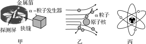 【实验现象】如图乙所示:绝大多数α粒子穿过金属箔后仍沿原来的方向前进,但是有少数α粒子却发生了偏转,甚至有极少数α粒子几乎达到180°的偏转,像是被金属箔弹了回来。