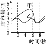 (2)“喷嚏”指鼻黏膜受刺激,急剧吸气,然后很快地由鼻孔喷出并发出声音的现象,如图曲线中,符合打喷嚏时呼吸特点的曲线是________(填“甲”或“乙”)。