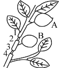 5.(2021·嵊州)果树的一段枝条上长有A、B两个果实,若对枝条的两个部位(图中1-2间和3-4间)的树皮进行环剥,下列叙述正确的是 ( )