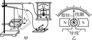 (3)图乙是灵敏电流计的结构示意图,它的工作原理与________(填“发电机”或“电动机”)相同。
