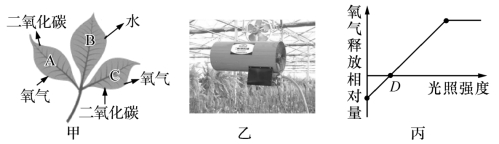 (2)如图丙所示,当光照强度处于D 点时,绿色植物光合作用强度________(填“大于”“小于”或“等于”)呼吸作用强度。