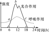15.如图曲线分别表示某植株一昼夜内光合作用和呼吸作用强度随时间的变化情况,下列分析正确的是 ( )