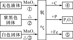 19.图示为有关氧气的知识结构图(部分反应条件省略。参加反应的氧气为足量)。下列相关说法合理的是 ( )