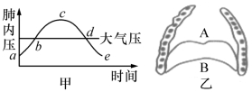 18.图甲是肺内压随时间变化的示意图,图乙表示人体膈肌收缩和舒张时在胸腔内的位置。下列说法正确的是 ( )