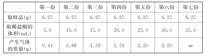 (3)在坐标图中画出6.25g样品中加入稀盐酸的体积与产生气体质量的关系图。