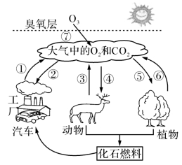 (1)在过程⑦中臭氧层中的臭氧在日光的作用下转化成了O2。臭氧是淡蓝色气体,臭氧层能有效阻挡紫外线,保护地球的生存环境。写出图示中臭氧转化为氧气的化学方程式:_____________________。