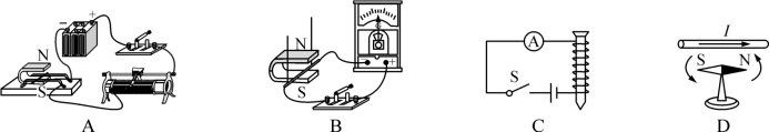 5.如图所示是一款按压式应急电筒。它的内部没有电池,主要由磁体和线圈组成。在使用时,使用者只需按压突出的按键来带动里面齿轮转动,灯泡就能发光照明。此款按压式应急电筒与下列实验原理相同的是 ( )