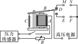 (1)当压力增加到一定程度时,电铃报警,说明汽车超载,则电铃应接在图中________(填“MN”或“EF”)之间。