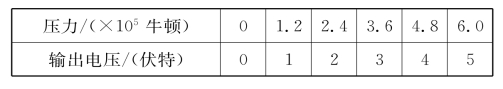 31.据交警部门统计,货车发生交通事故的主要原因是超载,于是交警部门为了检查货车是否超载,设计了一个货车超载自动报警电路。压力传感器受到的压力越大,输出的电压就越大。某压力传感器输出电压与压力的关系如表: