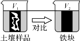 22.为提高成活率,幼苗移栽时还要考虑土壤结构。某同学在移栽地取了一块形状大小与铁块相同的土壤样品,将土壤样品和铁块分别放入两个相同的烧杯中,分别加水没过土壤样品和铁块,且两烧杯液面相平。如图所示,土壤样品和铁块体积均为V,两个烧杯中所加水的体积分别是V1和V2。