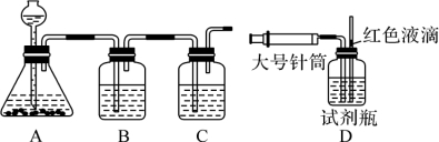 (4)用如图D所示装置探究CO2在水中的溶解能力。在试剂瓶中加入200毫升蒸馏水,塞上橡皮塞,用针筒抽取200毫升CO2,连接如图所示的装置后缓慢推动活塞,将CO2注入瓶内,当注入气体的体积达到140毫升时,红色液滴开始向上移动,则表明在该条件下,1体积水中能溶解________体积CO2。若在试剂瓶中加入200毫升氢氧化钠溶液,当注入气体达到600毫升时,红色液滴才开始向上移动,则造成此现象的原因是__________________________________。