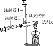 步骤二:在体积为V 的具支试管中加入足量的试剂X,塞上橡胶塞,记录注射器Ⅱ中气体体积(记为V1)。