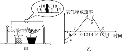 (2)将该装置放在自然环境下,测定夏季一昼夜装置内植物氧气释放速率的变化,得到如图乙所示曲线,装置甲细玻璃管中的液滴移到最右点是在一天中的________(填字母)点。