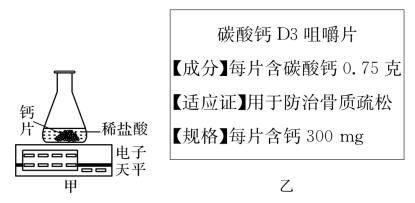 (1)图乙中“每片含钙300mg”中的“钙”指的是________(填“钙元素”“钙金属”或“钙单质”)。