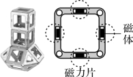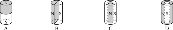 14.磁力片是一种能拼出各种造型的玩具。每块磁力片每条塑料边内有一个可旋转的圆柱形磁体,如图所示。任意两块磁力片的塑料边靠近均能相互吸引。下列关于该磁体磁极分布最合理的是 ( )