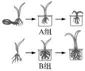 20.某兴趣小组在研究“植物根的吸水部位”活动中,选取10株生长旺盛、带有绿叶和根系的小麦幼苗,随机均分成2组。将A 组的小麦幼苗所有根的根尖剪去,并在切口处涂石蜡;B组不做处理,如图所示。将两组小麦幼苗分别放在土壤浸出液中培养,一段时间后A组幼苗开始出现萎蔫现象。请回答: