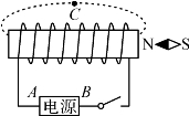 (2)请在图中的磁感线(虚线)上标出C点的磁场方向。