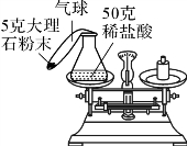 29.质量守恒是所有化学反应都必须遵守的定律。某兴趣小组利用如图装置验证质量守恒定律,步骤如下:①按如图方式将锥形瓶置于天平托盘上,调节天平平衡;②取下锥形瓶,然后使稀盐酸和大理石粉末充分接触;③充分反应后,将锥形瓶放回左盘,观察天平是否平衡。
