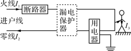 31.家用漏电保护器是在用电器发生漏电故障或人因操作失误而触电时实施保护的设备。正常情况下,住户家中没有电流流向地面,进户线中流入的电流I1与流出的电流I2相等。当人触电时,有电流I3通过人体流向大地,就会造成I1和I2不相等。当I1和I2的差值达到30mA时,漏电保护器就会迅速自动切断电路。