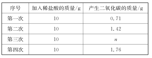 30.牙膏能洁白牙齿主要是摩擦剂的作用,某品牌牙膏的摩擦剂为碳酸钙和二氧化硅。小柯为测定该牙膏中碳酸钙的质量分数,取8.0g牙膏样品置于锥形瓶中,再将40.0g稀盐酸分四次加入,测量过程所得数据见下表。(已知牙膏中其他成分遇到盐酸时无气体产生)